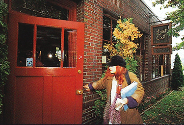 On the left a picture dated 8 September 2011, showing a G.I. Joe store in James Village being dismantled. The remodeling exposed evidence of the Ernst that used to be at the location. On the right, a shopper in front of the University Village Ernst during the liquidation sale in 1996.
